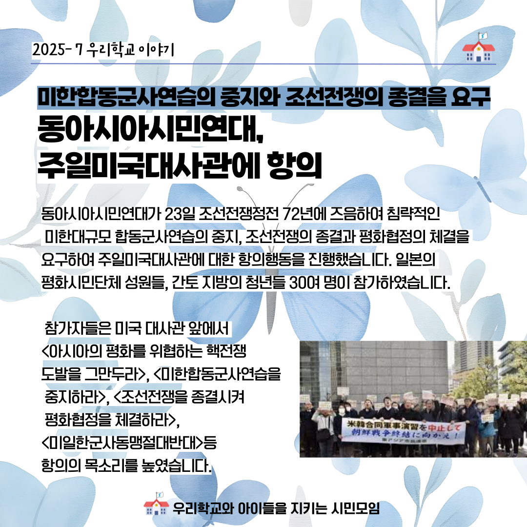 미한합동군사연습의 중지와 조선전쟁의 종결을 요구 / 동아시아시민연대, 주일미국대사관에 항의